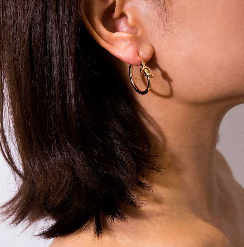Aros dorados con nudito. Cierre catalán.