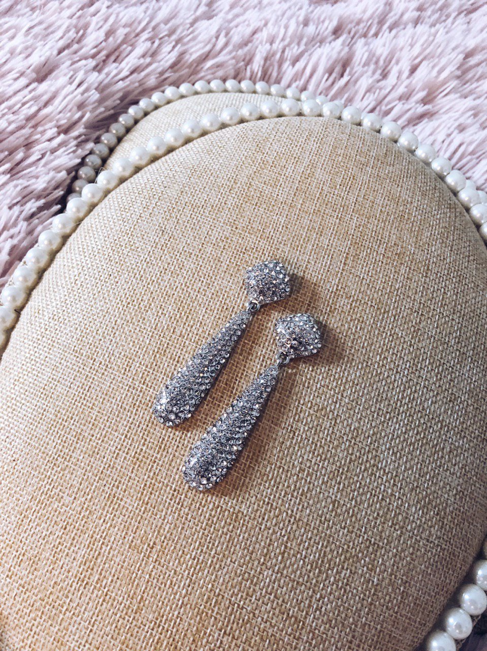 Pendientes en forma de lágrimas con incrustaciones de strass. Base plateada.